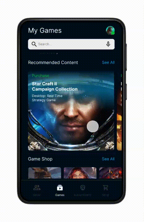The Games page has also been updated to showcase the games you own and what additional content is available for the games you own. You can shop for additional content, open the game on your desktop using the mobile app, as well as open a mobile game up (like Hearthstone) within the Battlenet library.