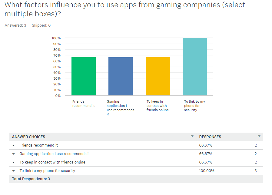 After my initial user interview, to track the research I conducted a survey called “Mobile Gaming Software Survey”. The survey consisted of a total of 10 questions, with 3 participants that fell under the target audience between the ages of 26 - 35. The users were primarily gamers that ranged from, using gaming mobile apps daily, casual users, users that don’t necessarily utilize gaming mobile apps.