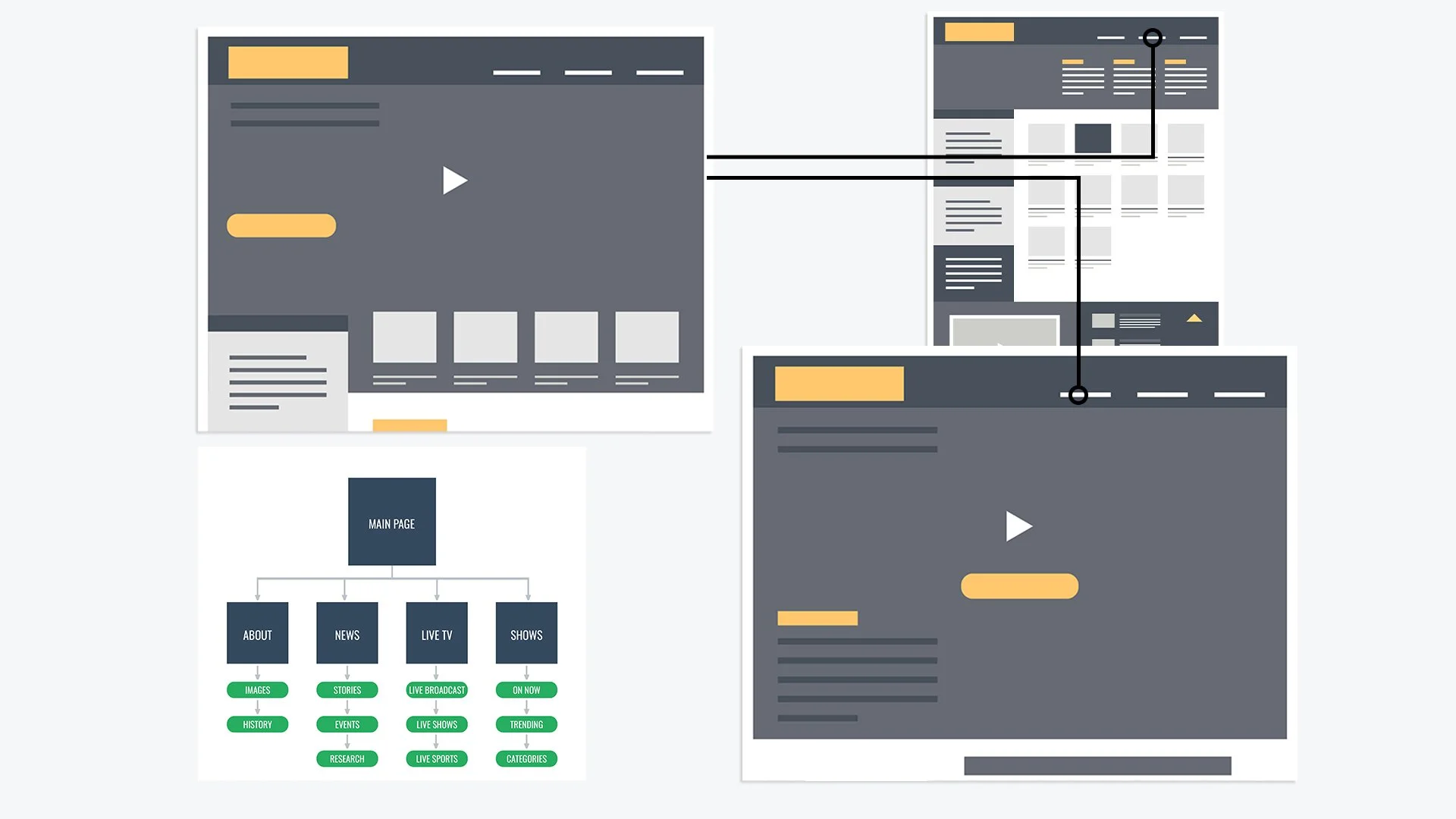 A concept and research phase which refers to an existing brand for this project. This section will showcase a brief overview of the navigation pathing and thought process behind the building of these detailed wireframes, soon after a full thought out digital appearance follows.